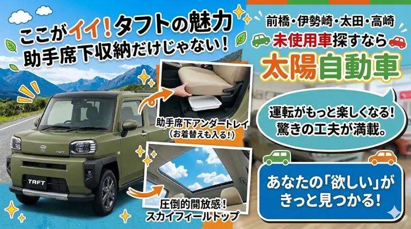 群馬県太田、前橋、高崎の軽自動車の未使用車専門店 太陽自動車の特徴