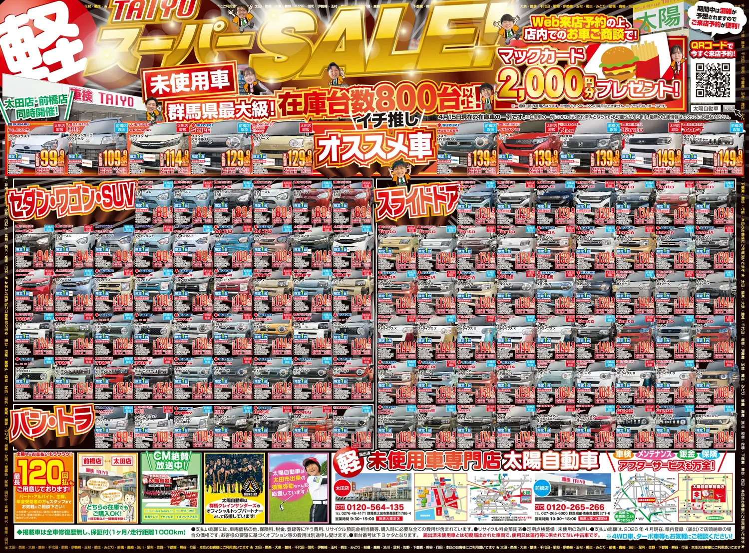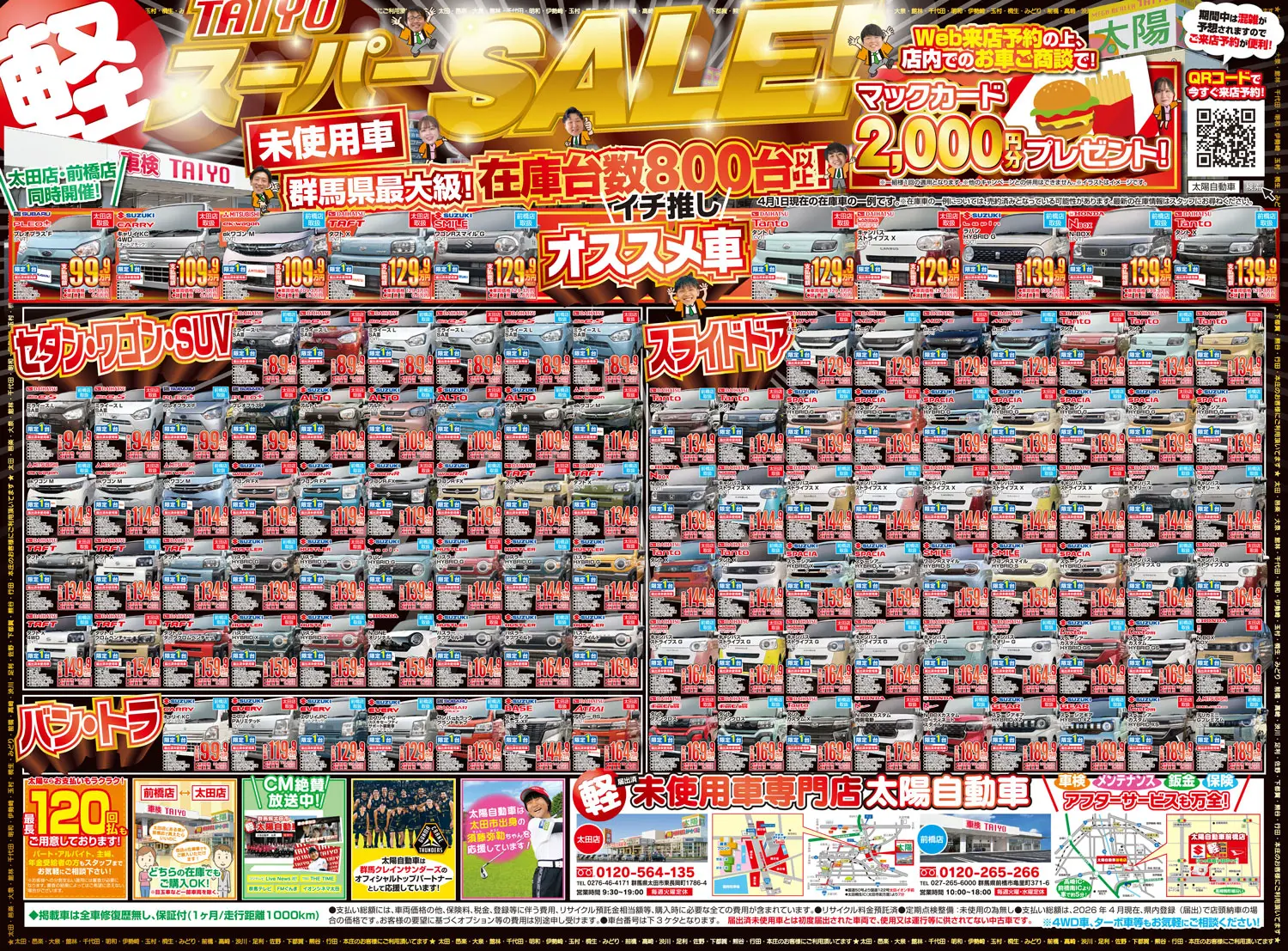群馬県、太田市・前橋市の軽自動車専門店!群馬県最大級!総在庫800台の太陽自動車
