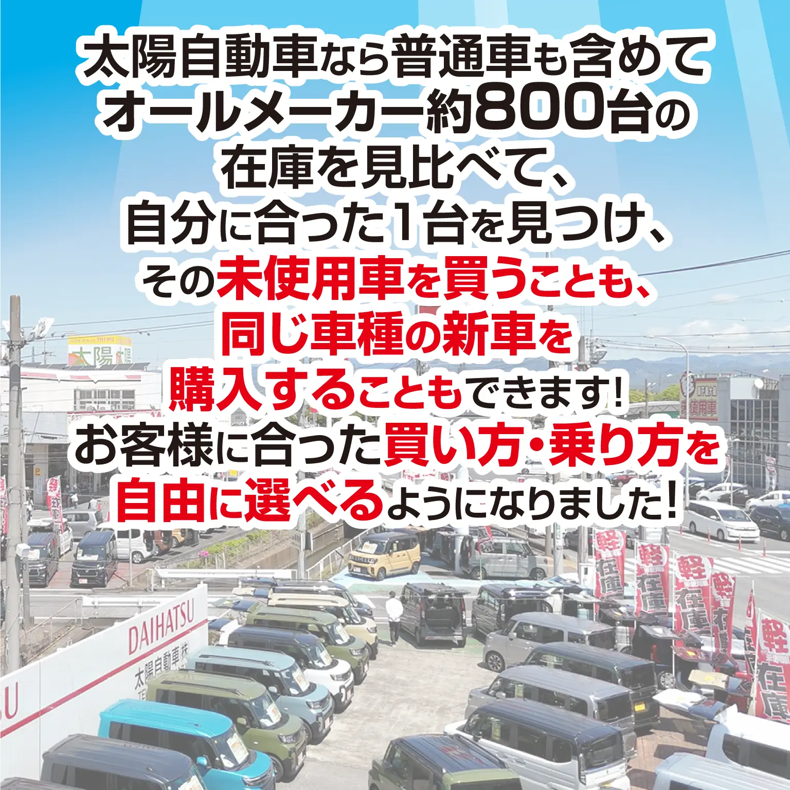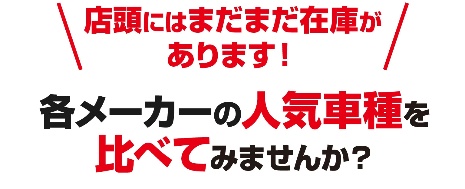 ※掲載車両については、売約済となっている場合があります。同タイプでの他在庫等もありますので、最新の在庫につきましてはスタッフまでご確認ください。※在庫車につきましては店頭でご商談をいただくことが可能です。現車をご確認いただきたい場合は事前に店舗へお電話、webでお申込みください。